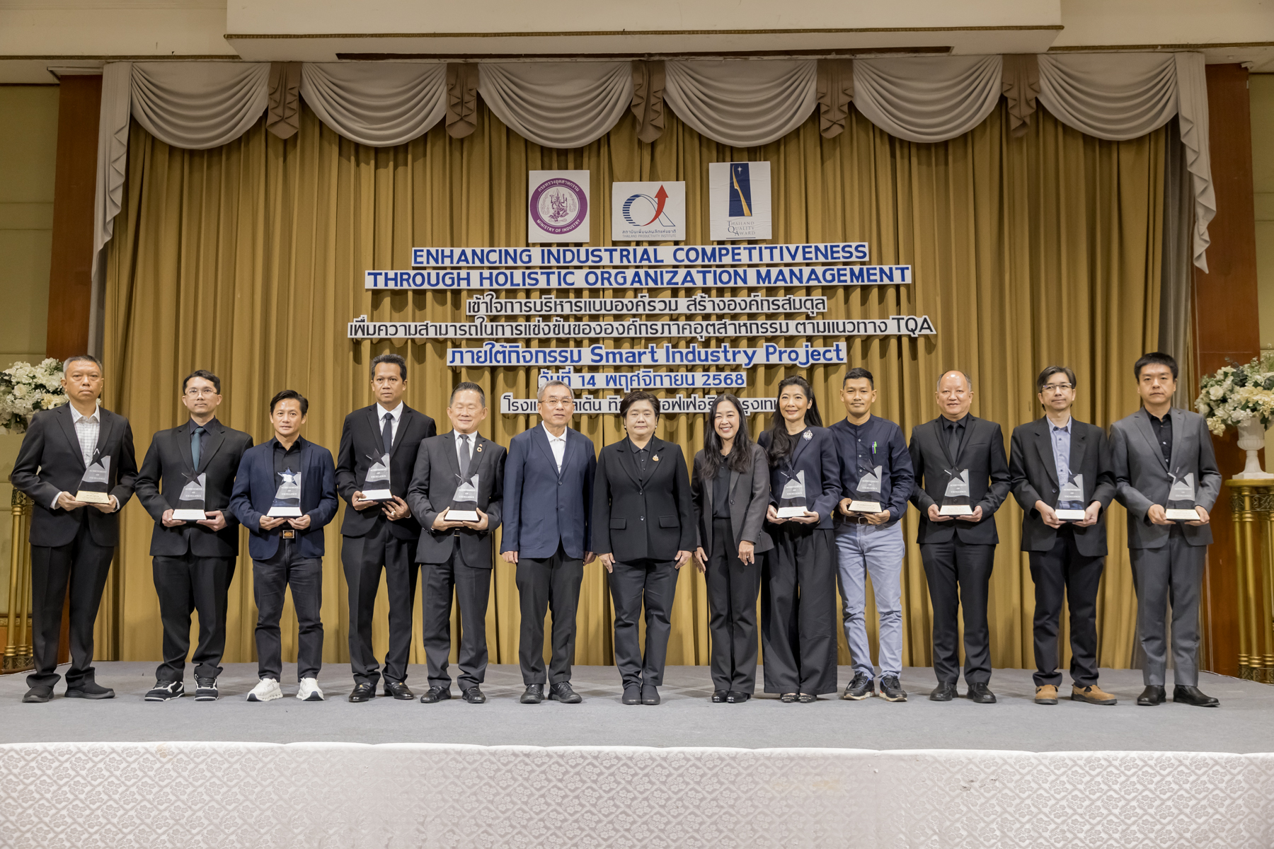 ในโอกาสนี้ ได้มีการ มอบรางวัลให้แก่ 10 องค์กรภาคอุตสาหกรรม ที่แสดงให้เห็นถึงความมุ่งมั่นในการพัฒนาองค์กรอย่างต่อเนื่อง ตลอดระยะเวลา 9 เดือนของการเข้าร่วมโครงการ SMART Industry Project 2568 โดยได้ผ่านทั้ง 3 ขั้นตอนสำคัญ คือ การเตรียมความพร้อมและสร้างความเข้าใจแนวทาง TQA (Commitment to Excellence), การวิเคราะห์และประเมินองค์กรอย่างเป็นระบบ (Search for Excellence) และการปรับปรุงและพัฒนาองค์กรตาม Feedback Report (Achievement of Excellence)