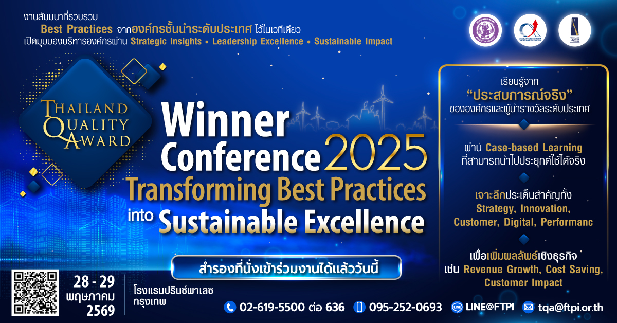 - ถ่ายทอด Best Practices จากองค์กรรางวัล TQA จริง