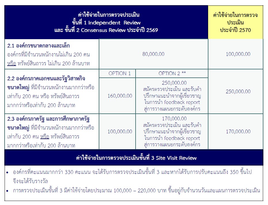 - สำนักงานรางวัลคุณภาพแห่งชาติสงวนสิทธิ์ในการปรับเปลี่ยนค่าธรรมเนียมได้ในภายหลัง และค่าธรรมเนียมในการตรวจประเมิน